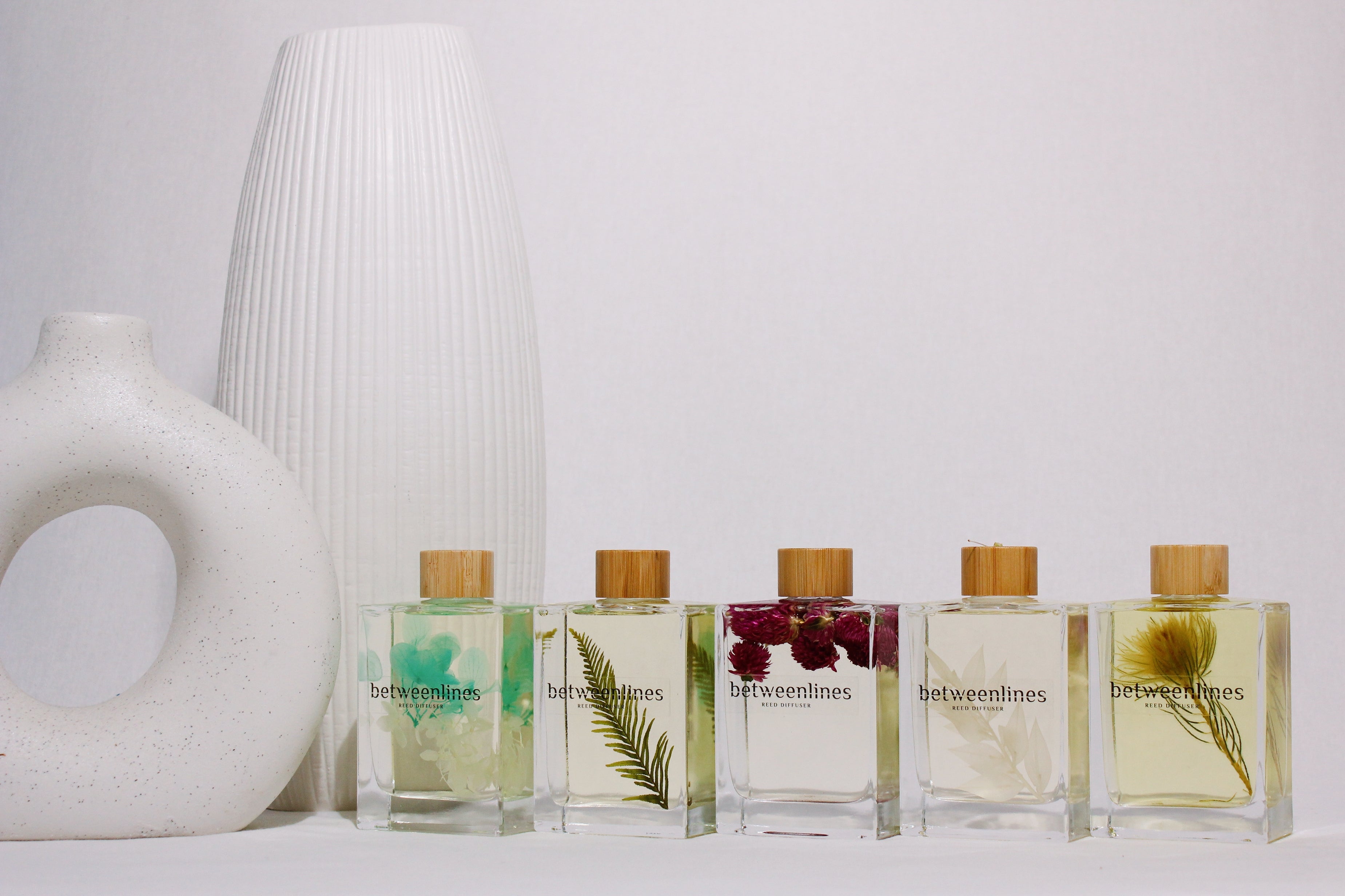 Carefully unplug the protective cap from beneath the wooden lid. Replace the lid and insert the desired number of reeds inside, taking care not to damage the botanical content. Invert the saturated reeds for immediate release of aroma. Periodically inverting the reeds will help deliver optimal diffusion. The fragrance will last between three to six months for 100mL diffusers, and six to nine months for 200mL diffusers. Temperature, humidity, draughts, the quantity of reeds and their frequency of rotations will affect the strength and longevity of diffusion. The botanical content inside will begin to oxidise once opened, which may result in minor and natural colour shifts.